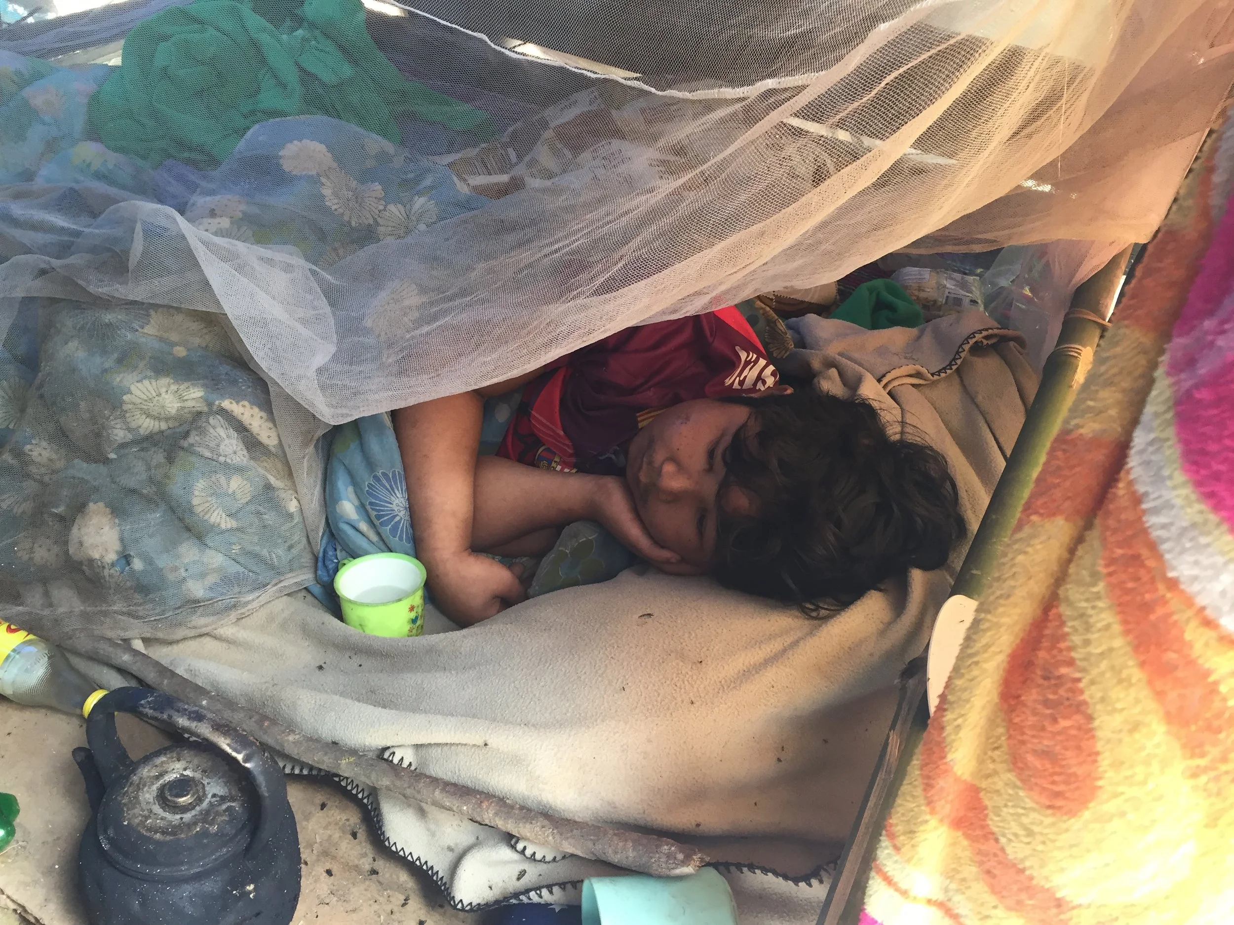 We had brought a mat and a couple of new wool blankets, of which we had to burn later, but we are off to the hospital.