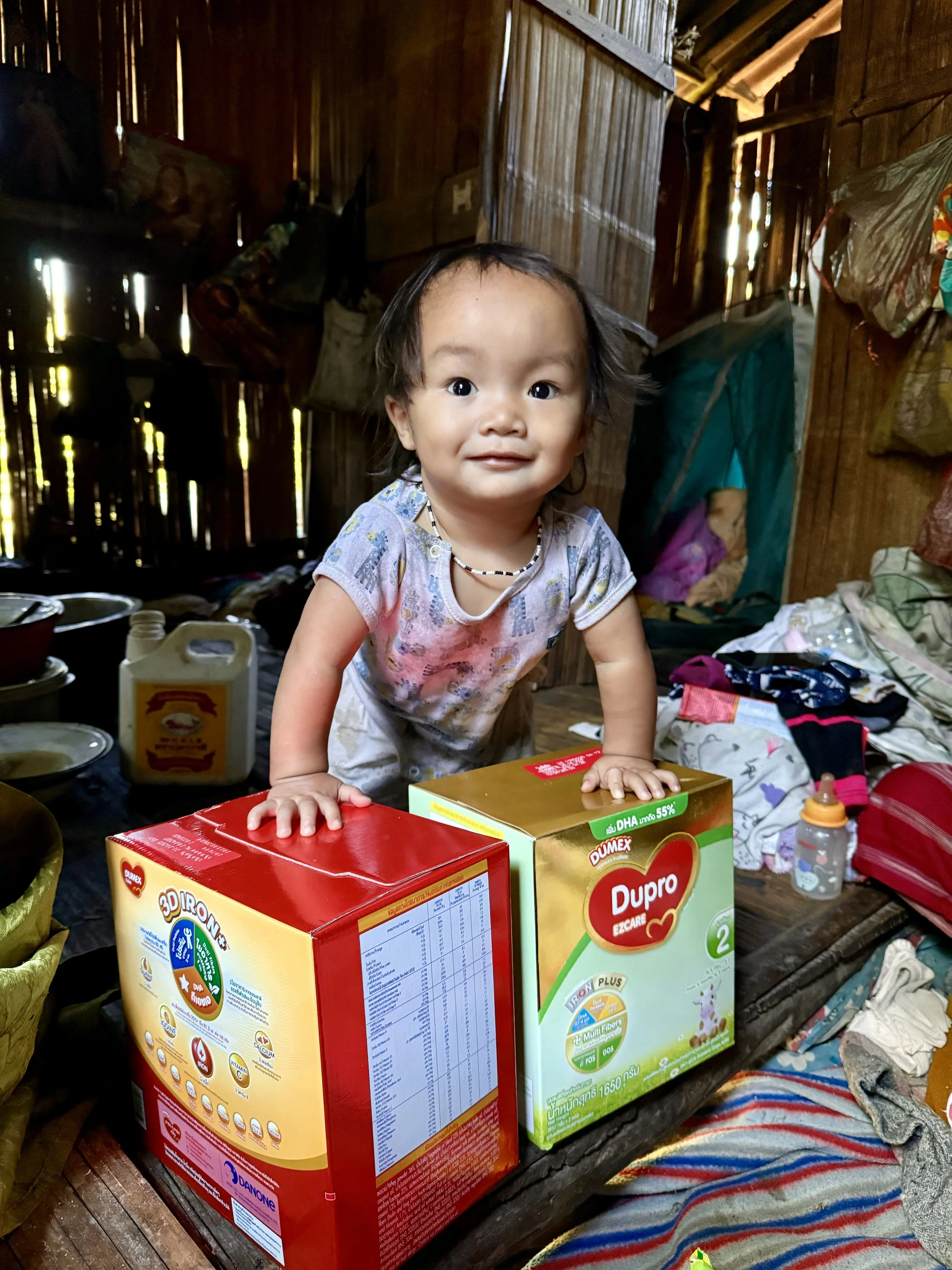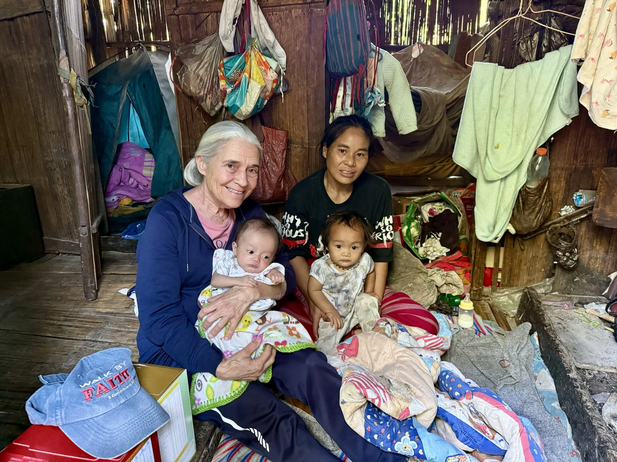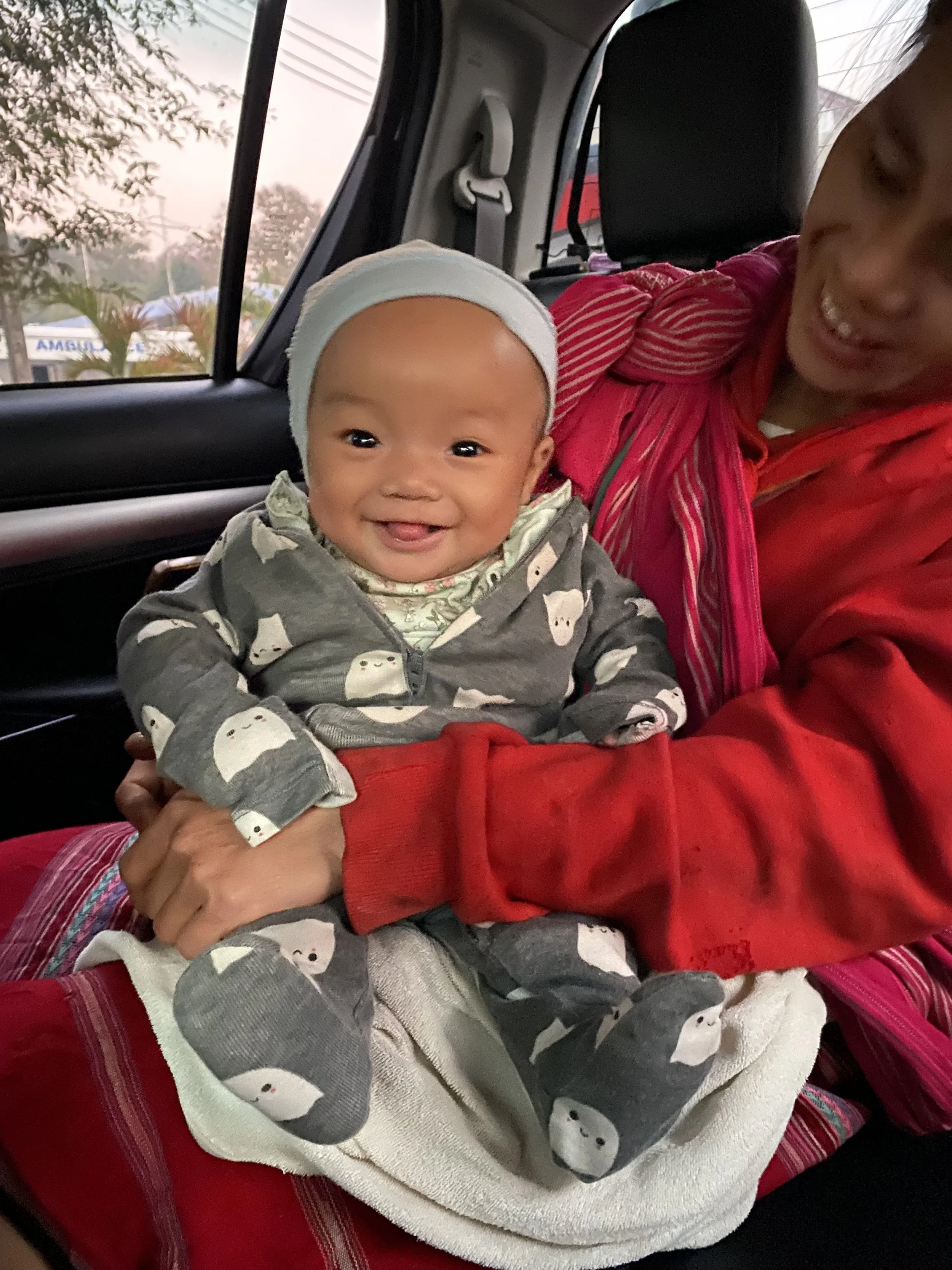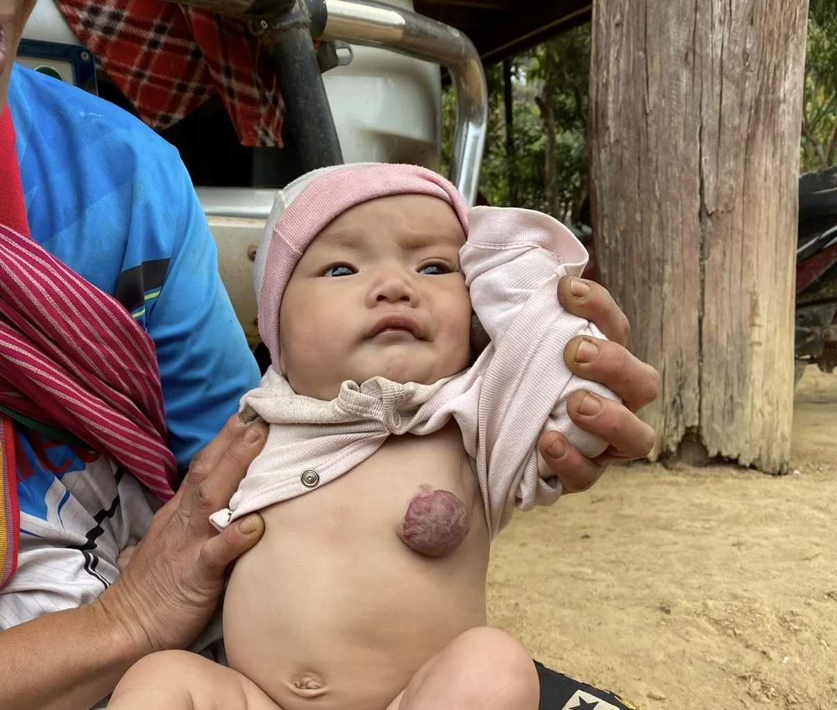 Meet SoChaDa in GaGhah village! This picture was one year ago. Do you remember we made so many trips to the hospital to get this hemangioma taken care of. The mother did not follow up and now one year later she has had another baby!! This baby was born premature at 7 months in this same old filthy nasty house! But they have no milk and the baby is definitely malnourished. I’m in love with SoChaDah!