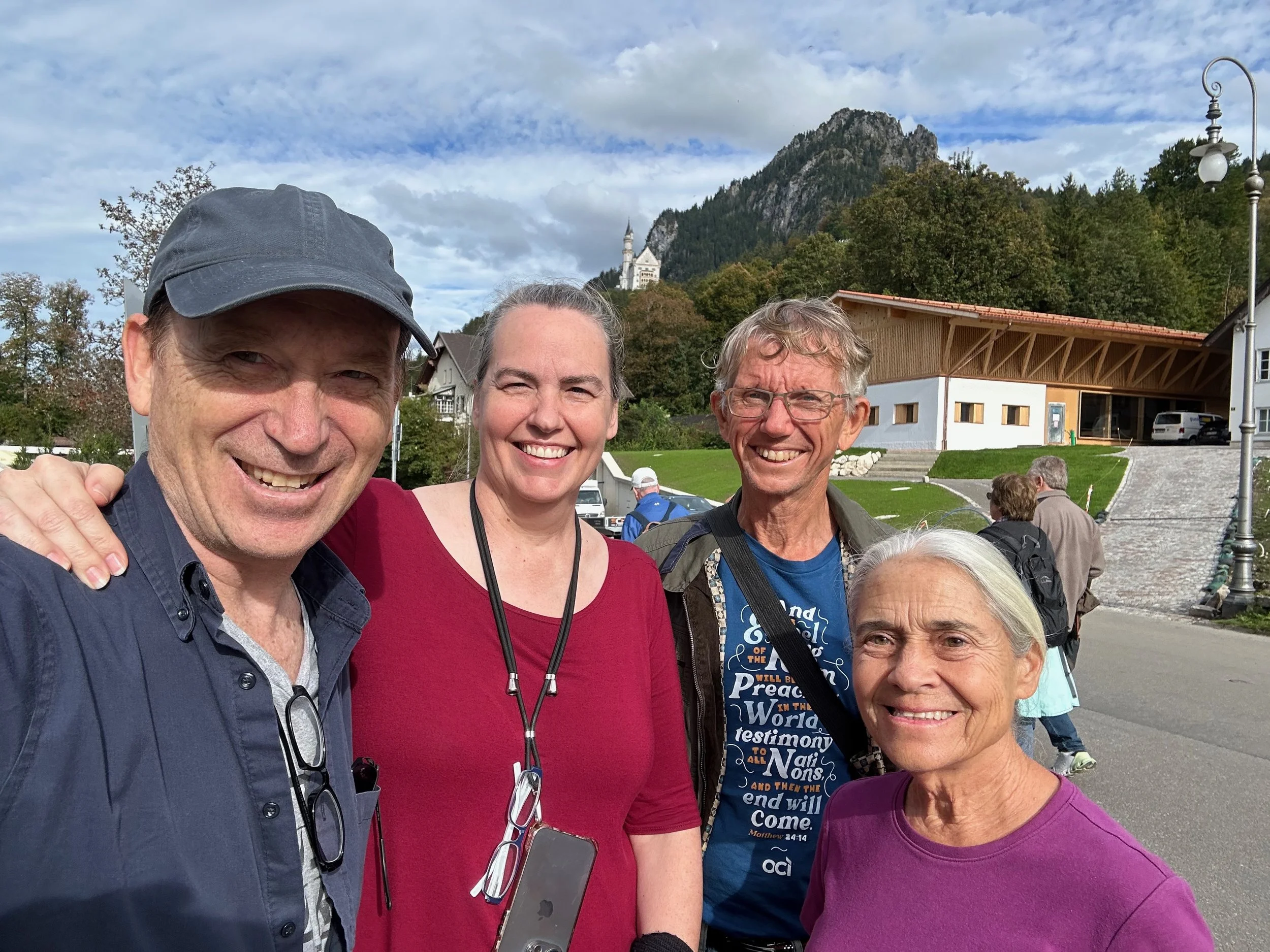 Four of us met in Frankfurt Germany, September 25, 2024. Natalie and I came from Tennessee and Jon and Tim from Bangkok. Tim’s friend, Nico, let us borrow his little VW Gulf car which was so generous of him. We drove it over 7000 km through at least 15 countries! Germany, Austria, Switzerland, Italy, France, Hungry, Romania, Bulgaria, Serbia, Croatia, Slovenia, Liechtenstein, Netherlands, Belgium, England UK. We fit nicely in that little car with our suitcases geometrically arranged in the trunk! Right off the bat we discovered it is extremely difficult to find water and restrooms, (WC = Water closet)! The 2 major necessities!! At a gas station we went to buy a 6-pack of 1.5Liter bottles of water - guess how much it cost? $32! It’s best to buy water from the grocery stores, however, everything was sparkling water! As for the WC’s, they are hidden and when you finally get to one, it costs 1Euro = approx $1. We didn’t yet have the right coins!