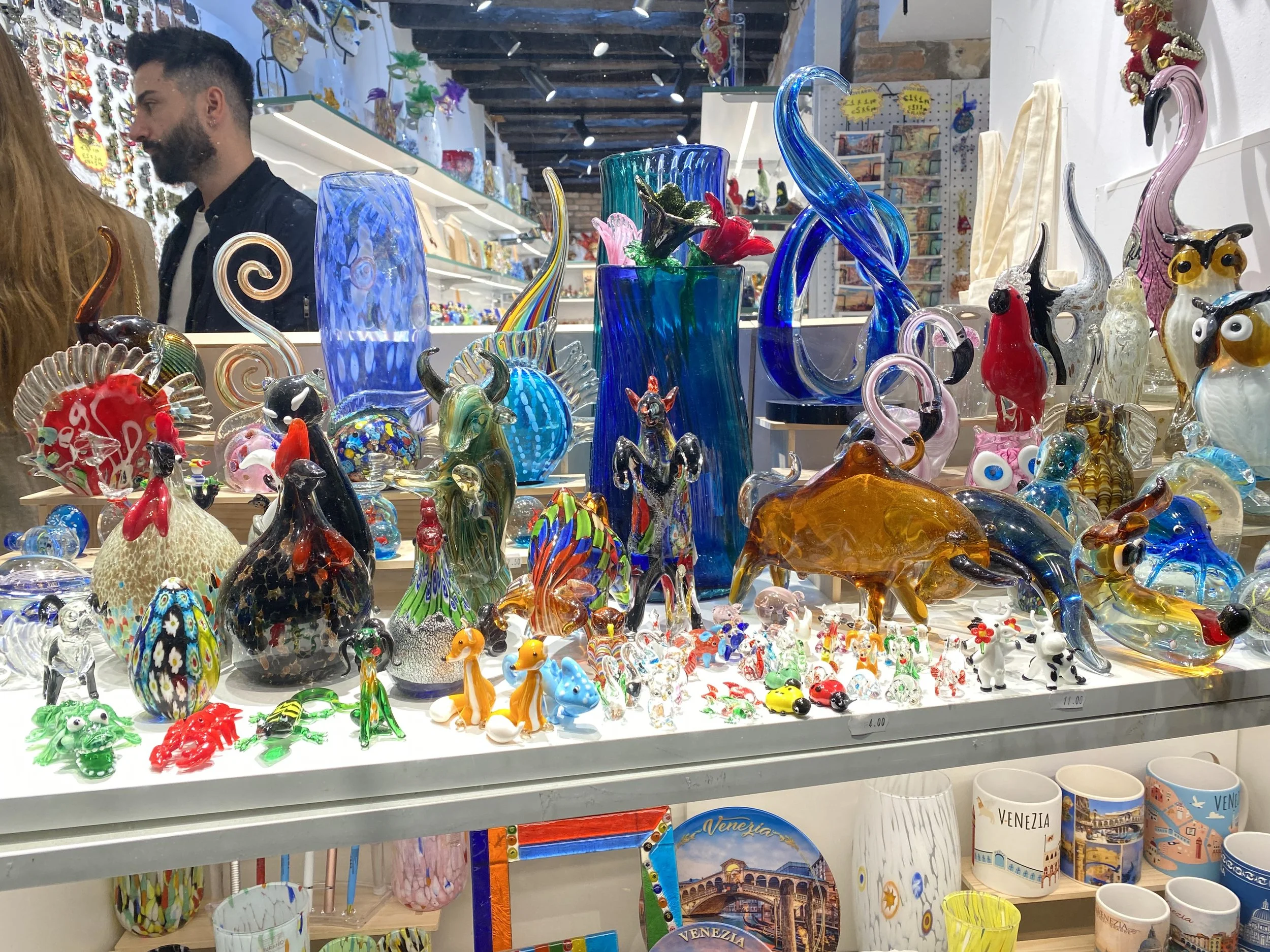 We were told that only rich people live in Venice now and parking would be impossible, so we took a sky train into Venice, and began walking around praying as we went. The sights were amazing! On one side was Canal Grande with boats loaded with people, then there were little streets, alleys, cobblestones, narrow pathways between old historic buildings, gondolas slipping through small waterways, glass souvenirs, cafe’s and small shops in every cranny. Pedestrians surged all around us.