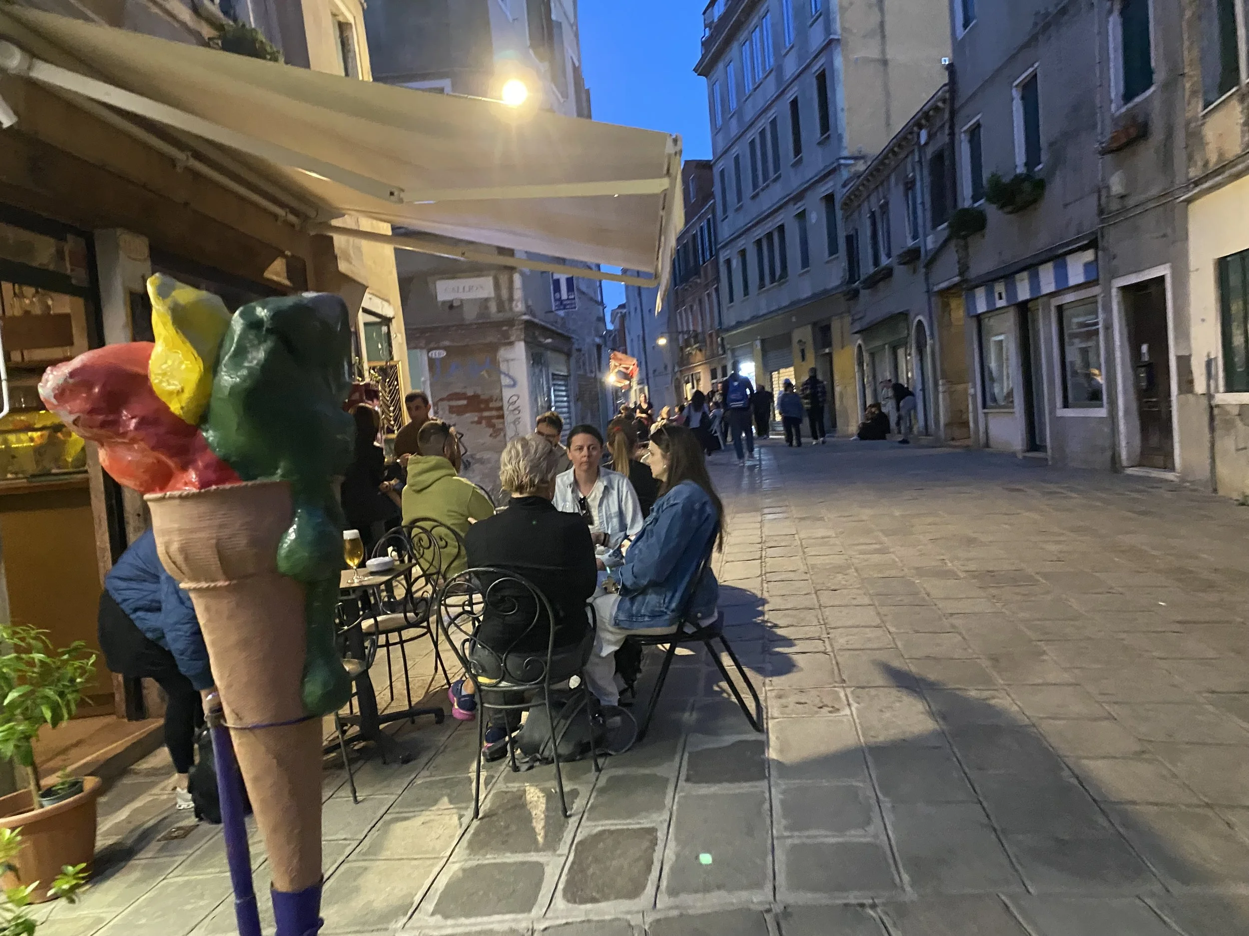 There were orchestras playing, restaurants with people dining and drinking outside under umbrellas, and blue light rockets being thrown up into the air by men wishing to make a sale..